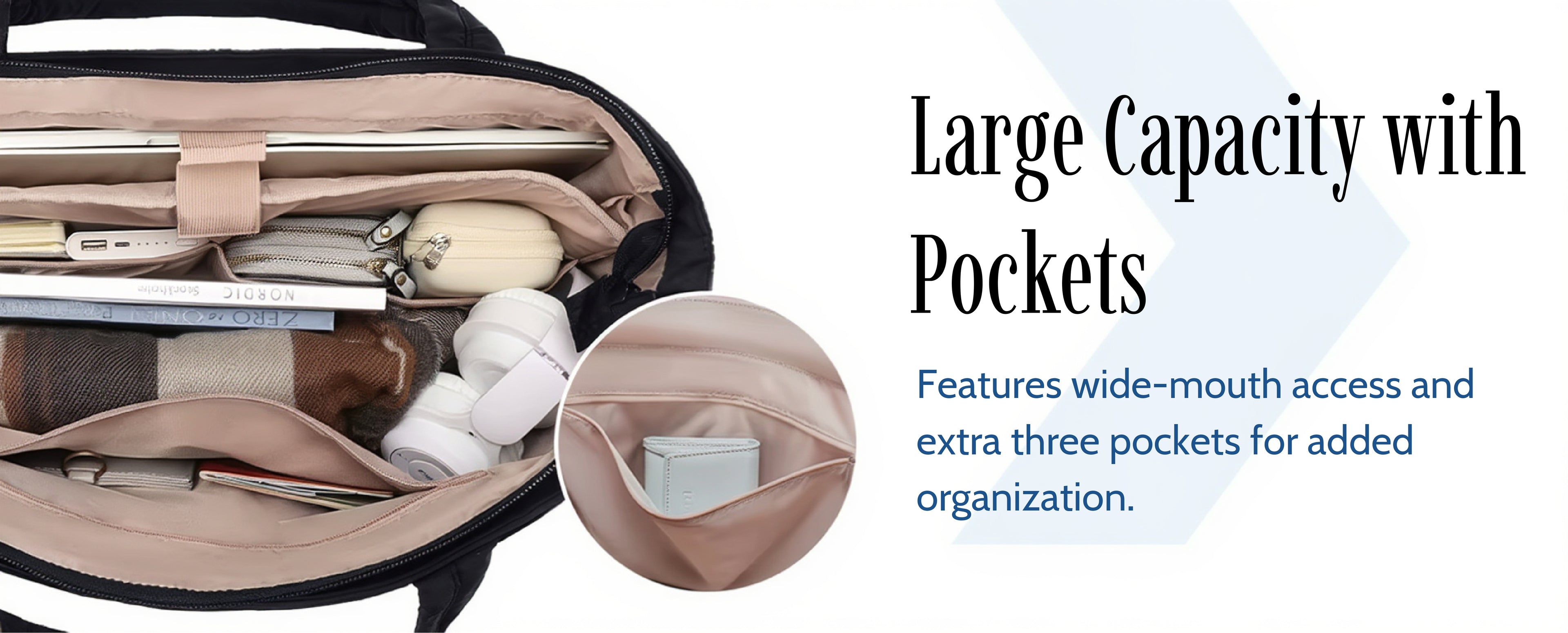 Designed to move seamlessly from work to travel to off-duty moments, it offers generous space and thoughtful pockets while maintaining a sleek, elevated look. Lightweight, practical, and quietly stylish; this is the tote you’ll reach for every day.